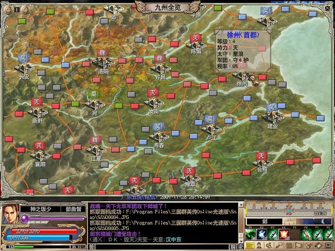 当11月28日20时的钟声响起,全国将士按星浪风云商议的国战战略迅速实施,我和深深加盟︳DK、毁灭团帮自然看守汉中,好快︳DK、毁灭和纵横!!!天下两团换城工作完美完成,星浪带的主力军也顺利拿下徐州,不久邺城也在︳DK、毁灭团的扰乱下落入我军囊中。这时,我军在广东五虎区的版图可观,拿下三个飞机场重镇,四个练级专属城,可见我军初期战术得到完美发挥。