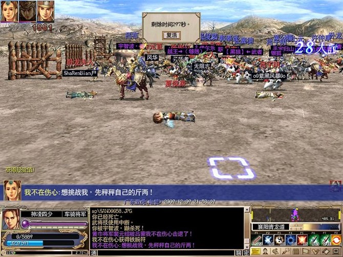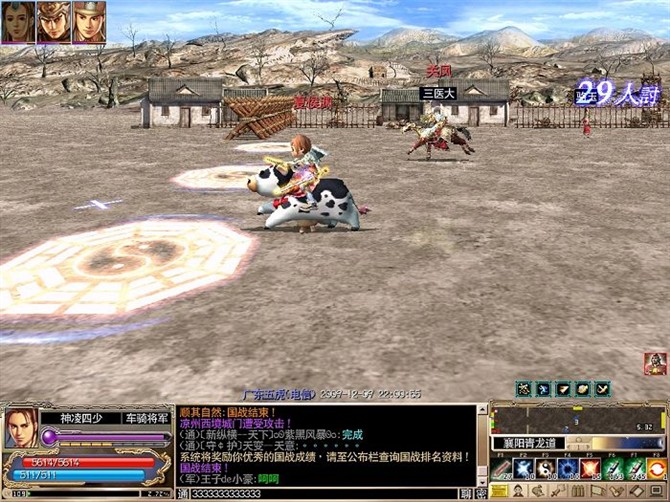 如果说徐州之战邺城之城是一场场你来我往的穿梭战,那襄阳战役就是一场场人海战。青龙道,一听这地名就知道是个龙争虎斗的地方!多少次兴国大军气势汹汹而来,多少次“灭”国将士气势轩昂迎上去;多少次“灭”国气势磅礴涌出青龙道,多少次兴国风雨无阻死守沙场。“襄阳城被攻下!”这句台词不知道昭告到多少次时,青龙道的激烈对战到了极点,兴“灭”两国每次攻守都是几支军队对抗,不由得让广东五虎区一时生气勃勃。忽然这时,收到风云叫我集合延津口打邺城,速度飞旗集合作战在邺东。有一次发现飞鱼风云野鼠竟然倒在血泊中,我奋勇向前要把他们从敌人脚下救起,但逛了几圈都拉不到他们的手。最后才知道